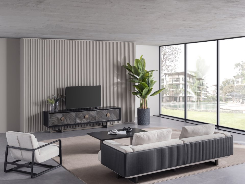 Cross Black Tv Unit; It is specially produced at Polo Mobilya, the address of stylish and modern furniture.